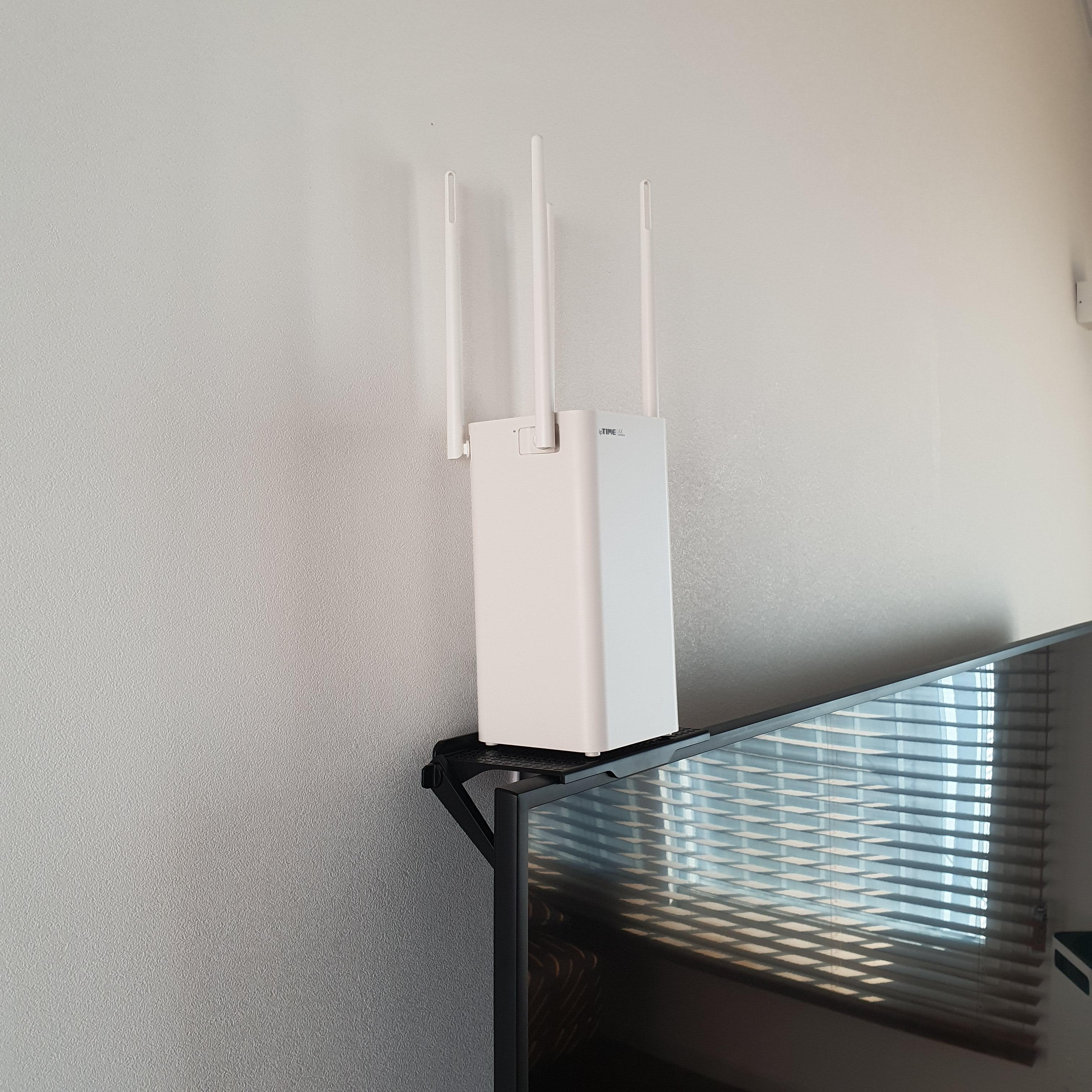 기존에 DIR-882는 벽걸이 티비 뒤에 설치했었다. DIR-882를 티비 위로 올려봤는데도 신호가 개선되지 않았다. 신호가 개선되었다면 검은색 공유기가 눈에 띄더라도 티비 위에 아슬아슬하게 거치하여 사용했을 것 같다. AX3004BCM 은 처음부터 티비 위에 선반을 놓고 거치하였다. 흰색이라서 티비 볼 때 눈에 거슬리지는 않는다. 티비 뒤에 숨겨놓으려고 하면 티비가 앞으로 많이 돌출되어야만 하기도 했다 ㅠㅠ (인터넷 공유기가 모듈로 내장된 티비를 만들어내라 엘지 삼성아... 이 모듈을 교체할 수 있게 만들어주면 좋겠다)